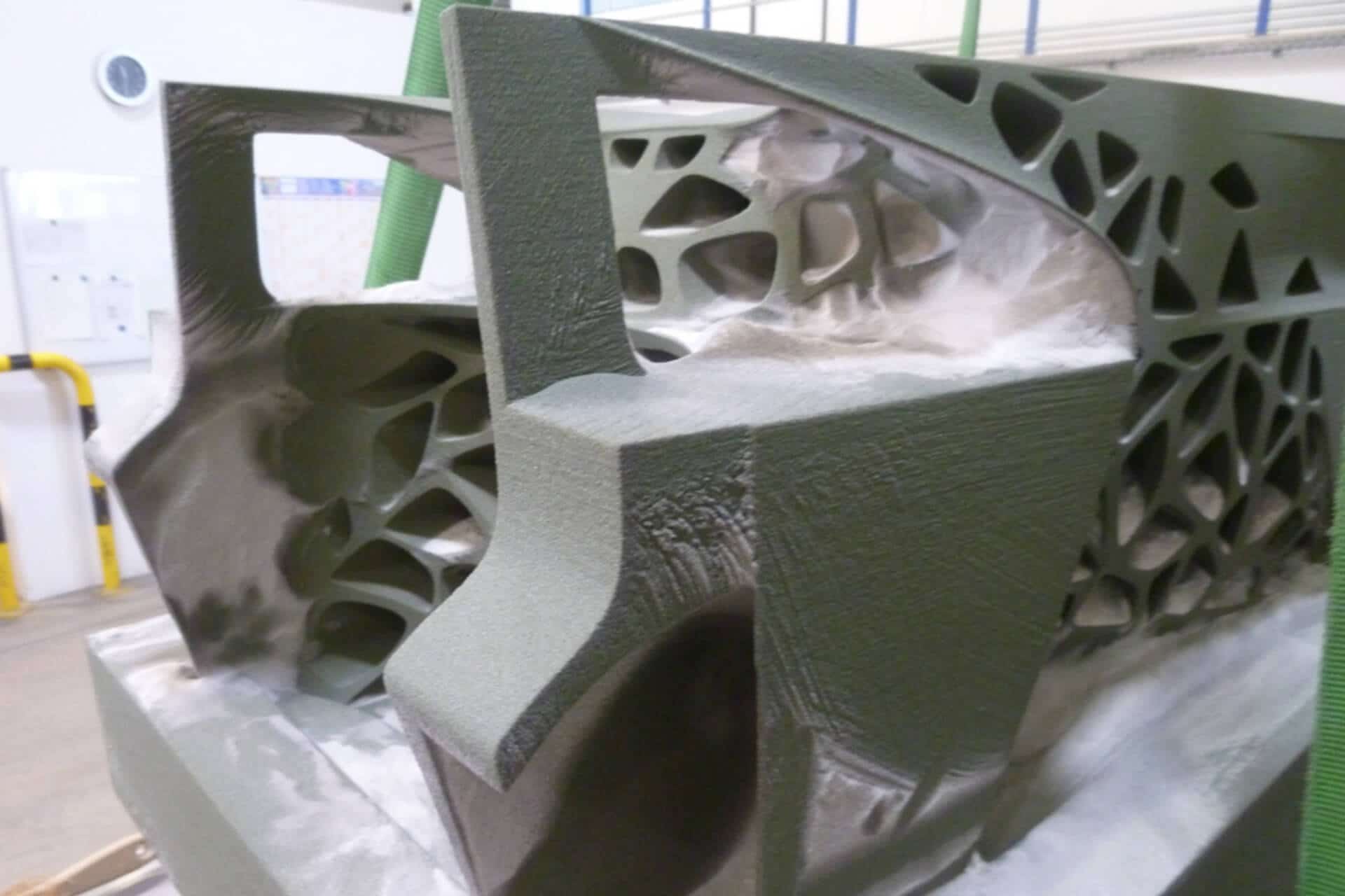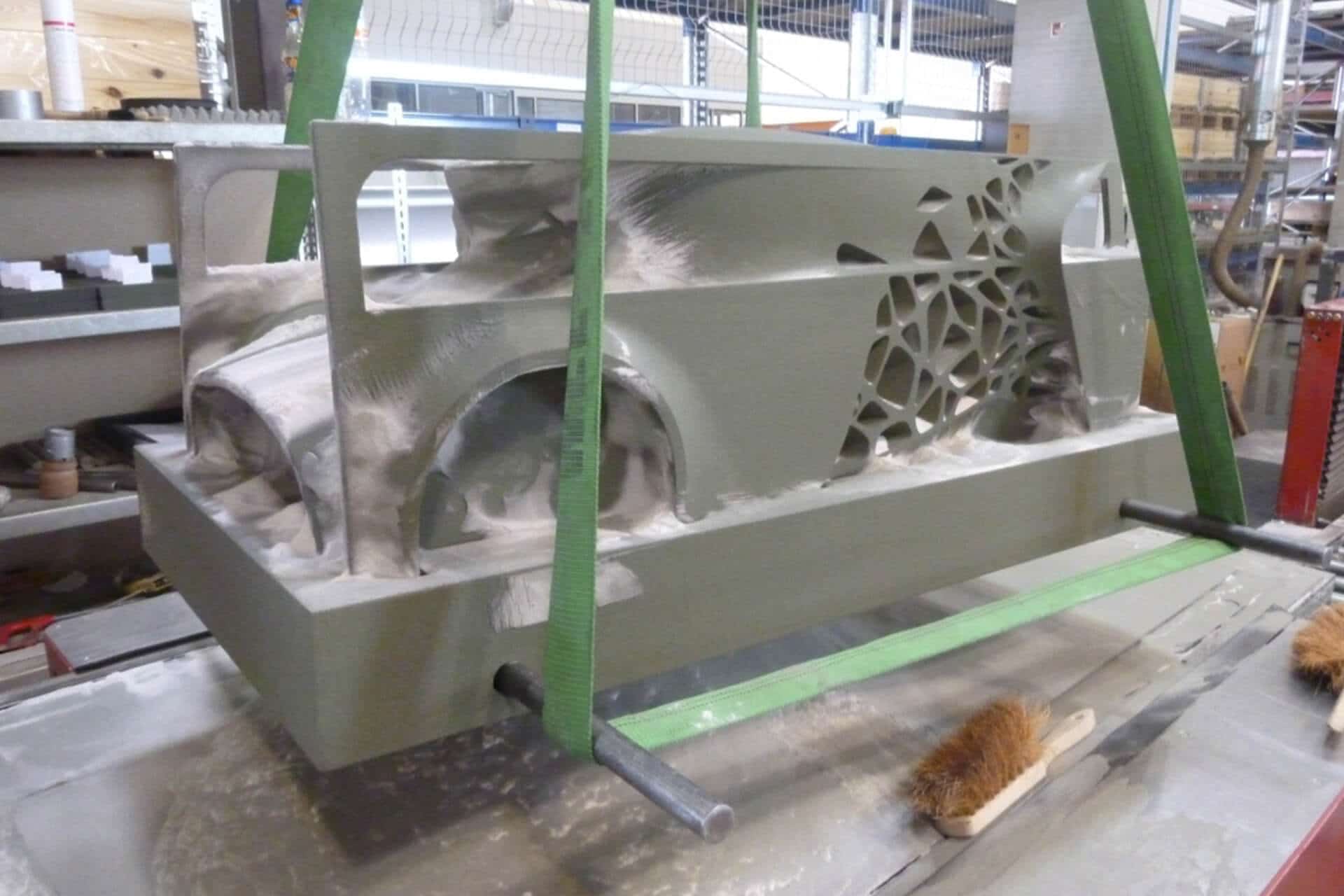 在voxeljet 3D服務中心,SEE O2是使用所謂的層構建過程直接從CAD數(shù)據(jù)中創(chuàng)建的。經(jīng)過大約十四個小時的打印時間,整車被 “打印 “出來。在拆開包裝–一個去除多余沙子的過程–之后,拉斐爾-克羅姆能夠第一次看到現(xiàn)實中的作品:”真實的模型超過了我的預期。它不僅細致、精確,而且機械性能穩(wěn)定。而這實際上給了我的工作一個新的層面。”