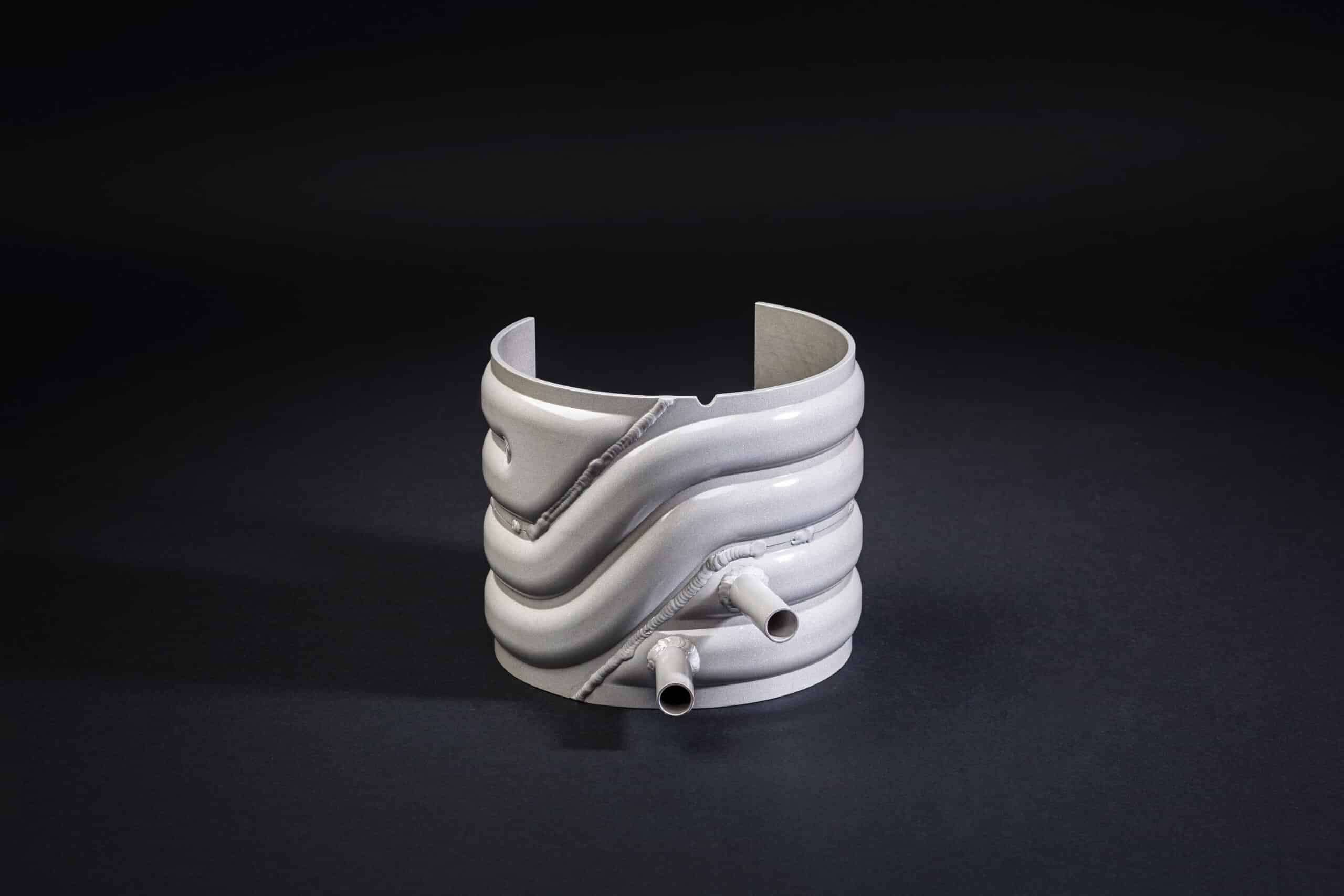 AionaCast通過 “概念驗證 “的方式提供了可行性證據(jù)。對冷卻介質(zhì)和減重的橫截面沒有給予多少關(guān)注?,F(xiàn)在,該團隊正在開發(fā)第二代產(chǎn)品。在這里,插入和充氣的板材與定子直接接觸,這再次提高了效率并減輕了重量。