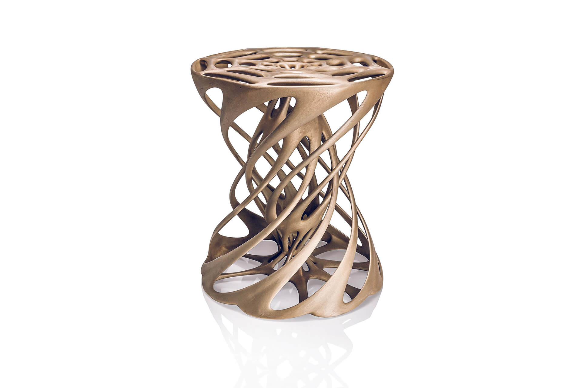 “KAS”代表“動態(tài)裝配結(jié)構(gòu)”,反映了被物質(zhì)化的數(shù)字思維過程。這也是“Infiniala座椅”雕塑的靈感來源。仔細(xì)觀察這把座椅的各種輪廓,就會發(fā)現(xiàn)它的線條總是形成一個無窮無盡的循環(huán)。從“KAS”和“Infiniala座椅”我們可以看出實現(xiàn)高度復(fù)雜的數(shù)字化藝術(shù)作品的獨特可能性。復(fù)雜的嵌套幾何結(jié)構(gòu)只能通過使用諸如維捷粘合劑噴射成型技術(shù)之類的粘合工藝來實現(xiàn)。依靠傳統(tǒng)的工藝生產(chǎn)這些鑄造模型是不可能的。