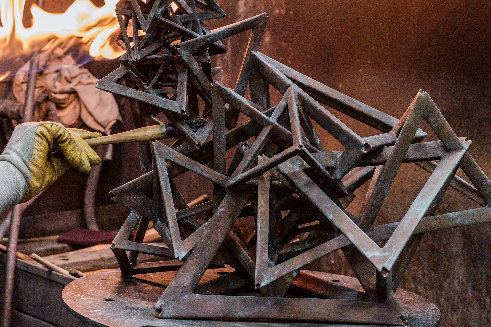 一旦鑄造過程結(jié)束,去毛和鈍化工作就開始了。Strassacker客戶特別欣賞這一服務(wù)。在與藝術(shù)家的密切合作下,藝術(shù)品的最終外觀由雙方共同創(chuàng)造完成。通過定制的工具,鑿工精確地雕刻出復(fù)雜的形狀和結(jié)構(gòu)。將鑄件通過專門開發(fā)的焊接工藝焊接到一起,使得成品上無任何可見的焊縫。小鹿斑比的表面也經(jīng)過高品質(zhì)的拋光處理。最后,通過對自然氧化過程中的化學(xué)反應(yīng)所產(chǎn)生效果的預(yù)想,使用成色劑給作品上色。調(diào)和出精美的色彩需要很高的工藝水準(zhǔn)和專業(yè)知識。