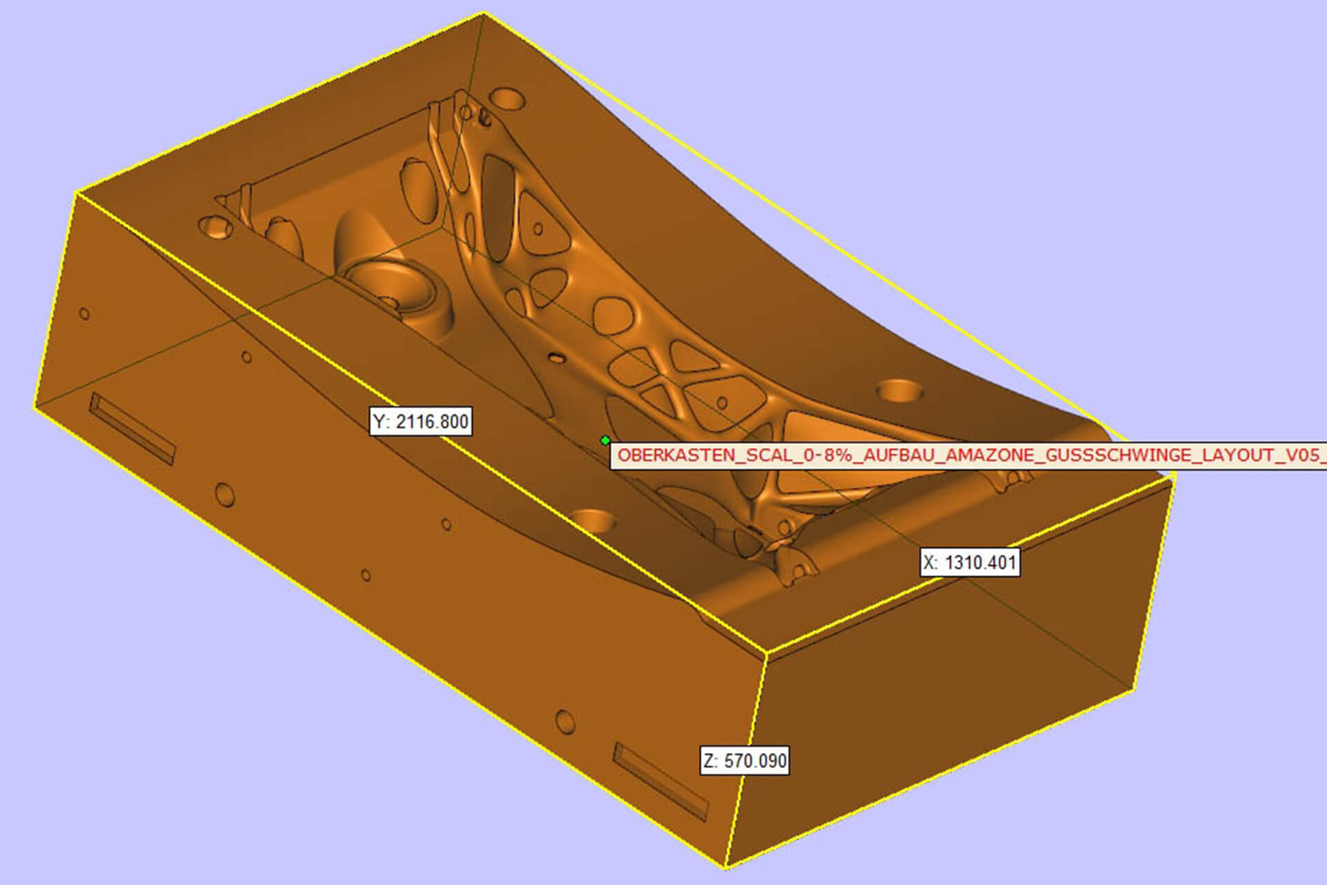 CAD軟件根據(jù)輕質(zhì)結(jié)構(gòu)創(chuàng)建了一個鑄件設(shè)計。